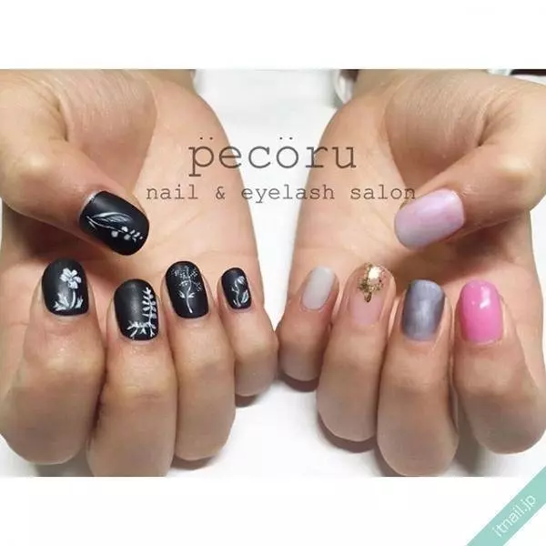 ボタニカル柄ネイル 大人っぽく楽しむなら 黒ベース が合言葉 Itnail